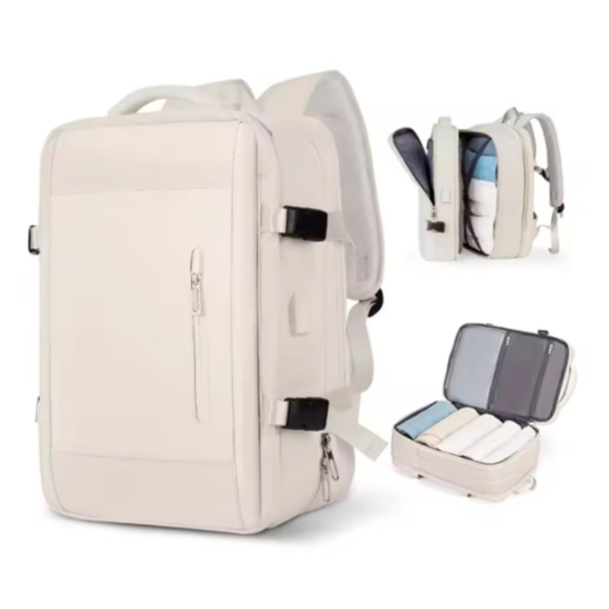 Viaja con estilo y funcionalidad con nuestro morral de viaje expandible en color beige. Equipado con conector USB para cargar tus dispositivos, es resistente al agua y cuenta con un compartimiento acolchado para tu portátil. Perfecto para cualquier aventura, disponible en otra variedad de colores para adaptarse a tu estilo.